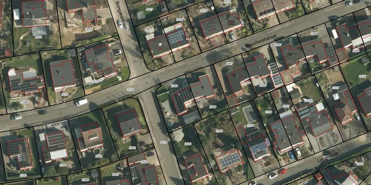 Het perceel waarop Mascherelstraat 15 staat heeft een oppervlakte van 488 m². Dit is een groot perceel. De perceeloppervlakte wordt geregistreerd door het Kadaster. Gedetailleerde informatie over de maten van dit perceel kunt u vinden in het rapport Kadastrale kaart met maatvoering van Mascherelstraat 15.