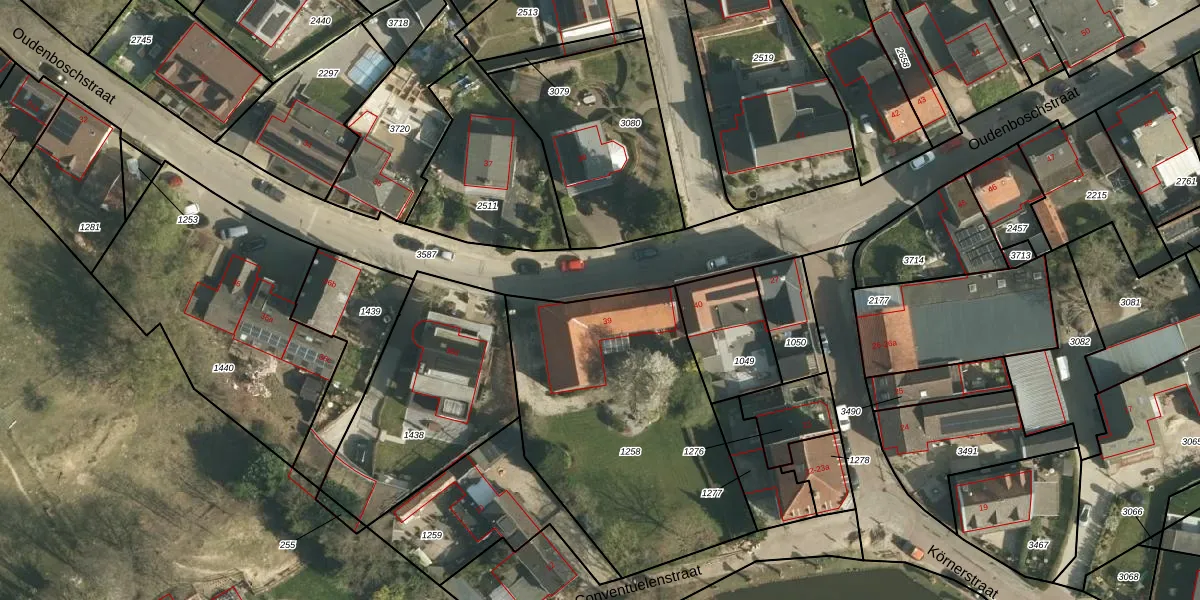 Oudenboschstraat 39 is gelegen op kadastraal perceel WNR00C1258. Deze kadastrale aanduiding is uniek en wordt gebruikt door het Kadaster om eigendomsrechten en andere zakelijke rechten vast te leggen. Het perceel maakt onderdeel uit van de kadastrale gemeente Wijnandsrade.