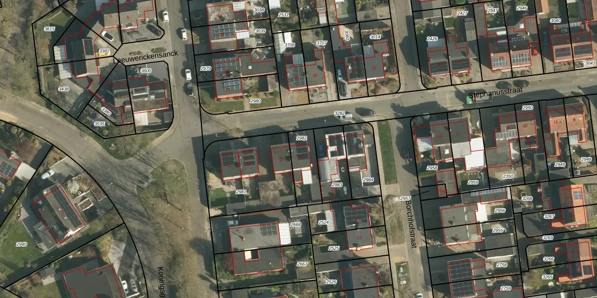 Stephanusstraat 25 is gelegen op kadastraal perceel WNR00A2982. Deze kadastrale aanduiding is uniek en wordt gebruikt door het Kadaster om eigendomsrechten en andere zakelijke rechten vast te leggen. Het perceel maakt onderdeel uit van de kadastrale gemeente Wijnandsrade.
