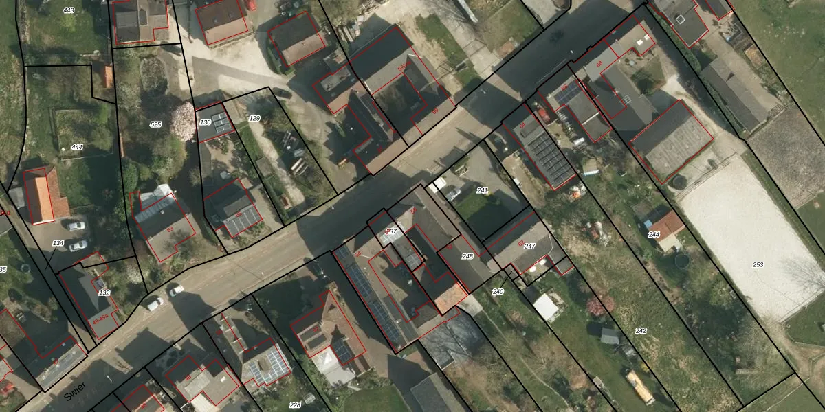 Het perceel waarop Swier 58 staat heeft een oppervlakte van 2470 m². Dit is een zeer groot perceel. De perceeloppervlakte wordt geregistreerd door het Kadaster. Gedetailleerde informatie over de maten van dit perceel kunt u vinden in het rapport Kadastrale kaart met maatvoering van Swier 58.