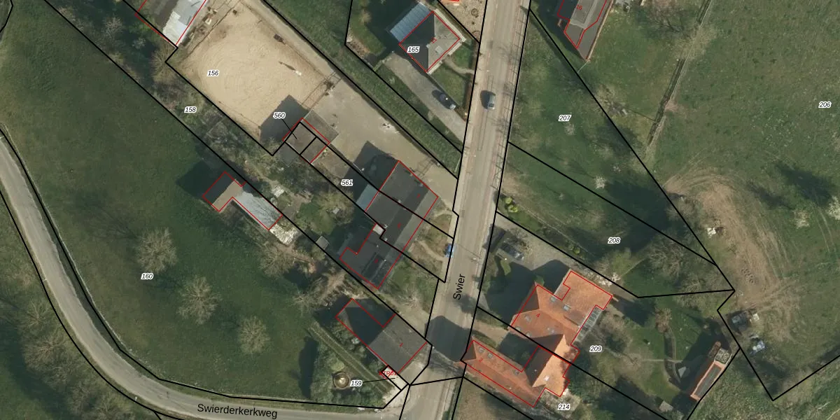Het perceel waarop Swier 7 staat heeft een oppervlakte van 3856 m². Dit is een zeer groot perceel. De perceeloppervlakte wordt geregistreerd door het Kadaster. Gedetailleerde informatie over de maten van dit perceel kunt u vinden in het rapport Kadastrale kaart met maatvoering van Swier 7.