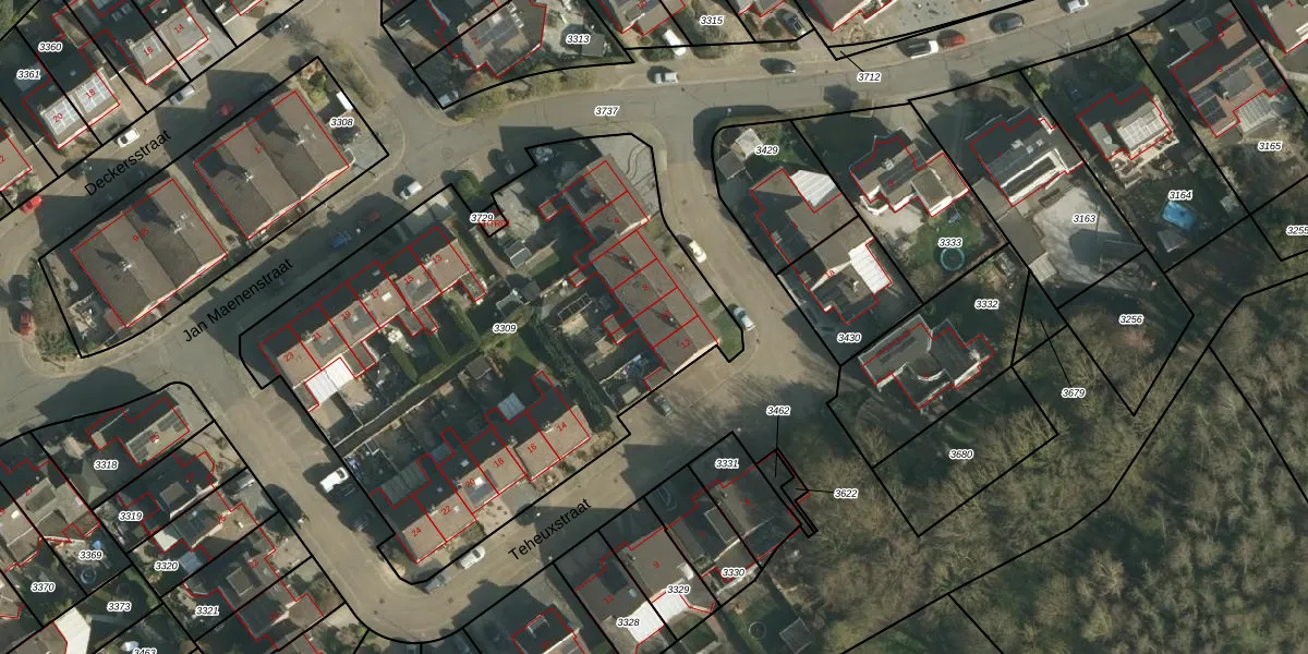 Teheuxstraat 10 is gelegen op kadastraal perceel WNR00A3309. Deze kadastrale aanduiding is uniek en wordt gebruikt door het Kadaster om eigendomsrechten en andere zakelijke rechten vast te leggen. Het perceel maakt onderdeel uit van de kadastrale gemeente Wijnandsrade.