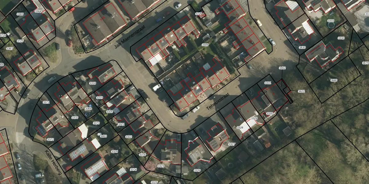 Teheuxstraat 22 is gelegen op kadastraal perceel WNR00A3309. Deze kadastrale aanduiding is uniek en wordt gebruikt door het Kadaster om eigendomsrechten en andere zakelijke rechten vast te leggen. Het perceel maakt onderdeel uit van de kadastrale gemeente Wijnandsrade.