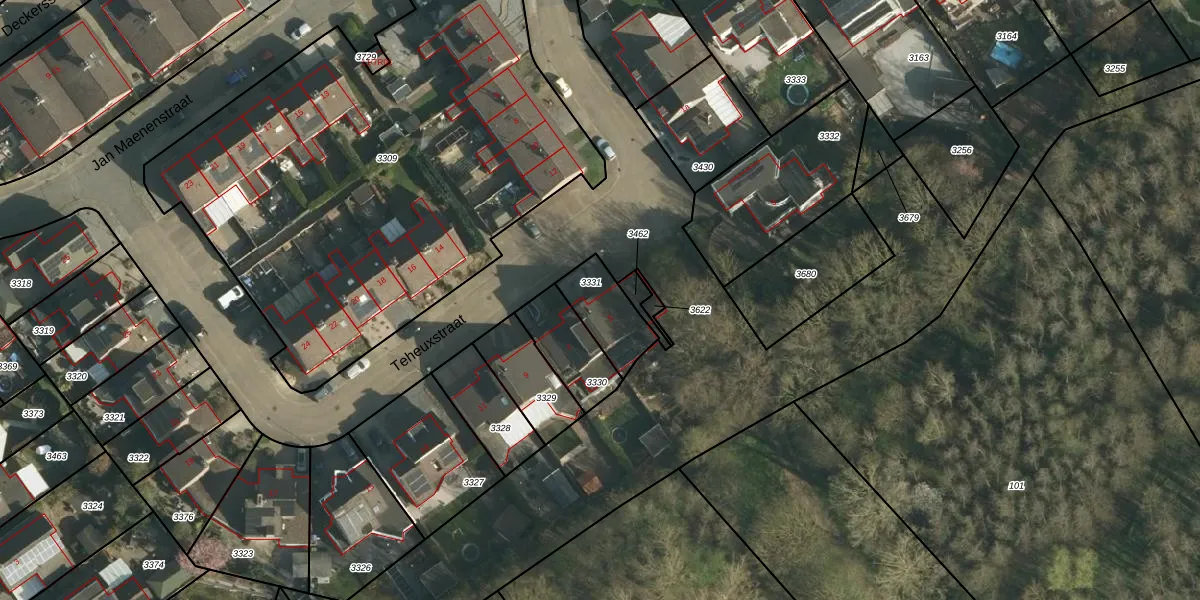 Teheuxstraat 5 is gelegen op kadastraal perceel WNR00A3331. Deze kadastrale aanduiding is uniek en wordt gebruikt door het Kadaster om eigendomsrechten en andere zakelijke rechten vast te leggen. Het perceel maakt onderdeel uit van de kadastrale gemeente Wijnandsrade.