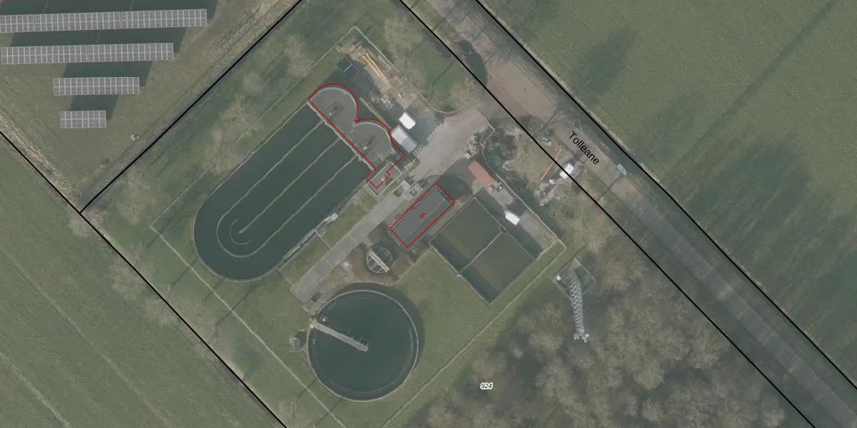 Het perceel waarop Tolleane 3-A staat heeft een oppervlakte van 1,6 ha. Dit is een zeer groot perceel. De perceeloppervlakte wordt geregistreerd door het Kadaster. Gedetailleerde informatie over de maten van dit perceel kunt u vinden in het rapport Kadastrale kaart met maatvoering van Tolleane 3-A.