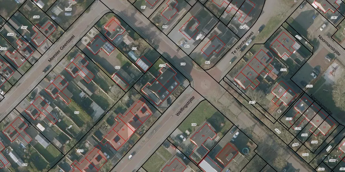 Het perceel waarop Welfingstrjitte 37 staat heeft een oppervlakte van 575 m². Dit is een groot perceel. De perceeloppervlakte wordt geregistreerd door het Kadaster. Gedetailleerde informatie over de maten van dit perceel kunt u vinden in het rapport Kadastrale kaart met maatvoering van Welfingstrjitte 37.