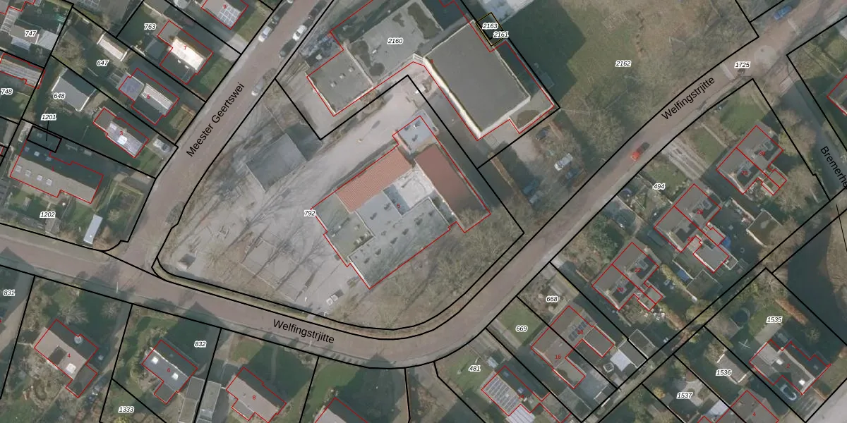 Welfingstrjitte 5 is gelegen op kadastraal perceel LPH00G792. Deze kadastrale aanduiding is uniek en wordt gebruikt door het Kadaster om eigendomsrechten en andere zakelijke rechten vast te leggen. Het perceel maakt onderdeel uit van de kadastrale gemeente Lippenhuizen.