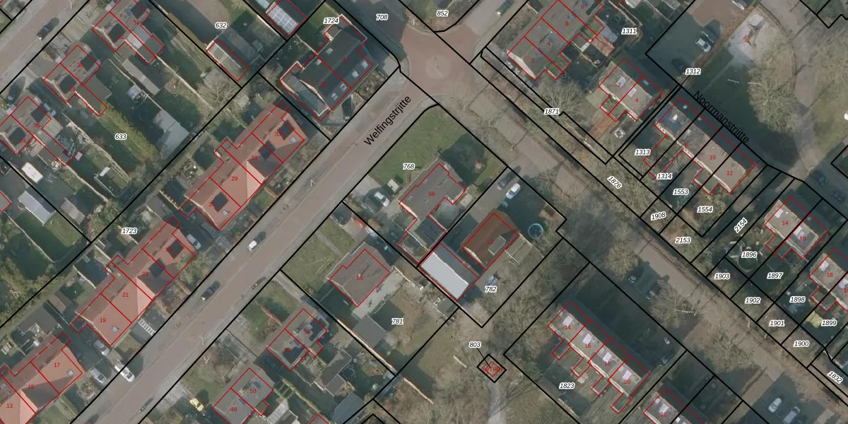 Het perceel waarop Welfingstrjitte 58 staat heeft een oppervlakte van 748 m². Dit is een groot perceel. De perceeloppervlakte wordt geregistreerd door het Kadaster. Gedetailleerde informatie over de maten van dit perceel kunt u vinden in het rapport Kadastrale kaart met maatvoering van Welfingstrjitte 58.