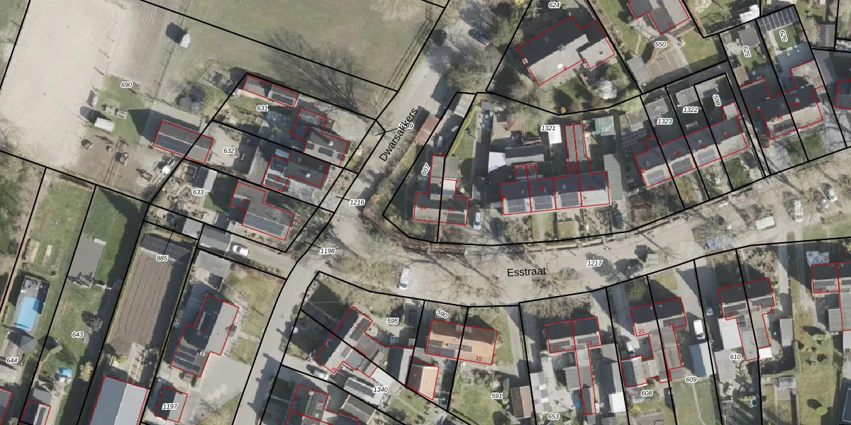 Het perceel waarop Esstraat 16 staat heeft een oppervlakte van 297 m². Dit is een middelgroot perceel. De perceeloppervlakte wordt geregistreerd door het Kadaster. Gedetailleerde informatie over de maten van dit perceel kunt u vinden in het rapport Kadastrale kaart met maatvoering van Esstraat 16.