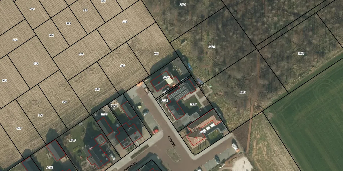 Marter 20-a is gelegen op kadastraal perceel MIL00P1037. Deze kadastrale aanduiding is uniek en wordt gebruikt door het Kadaster om eigendomsrechten en andere zakelijke rechten vast te leggen. Het perceel maakt onderdeel uit van de kadastrale gemeente Mill.