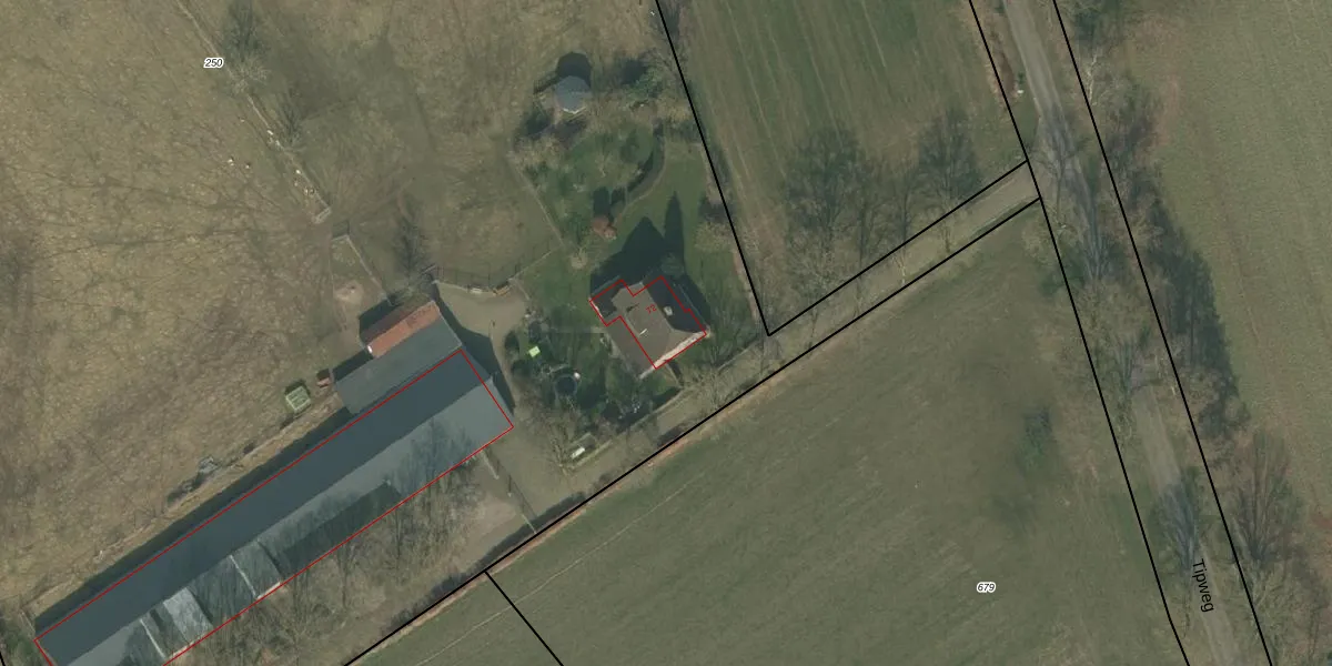 Het perceel waarop Tipweg 72 staat heeft een oppervlakte van 1,8 ha. Dit is een zeer groot perceel. De perceeloppervlakte wordt geregistreerd door het Kadaster. Gedetailleerde informatie over de maten van dit perceel kunt u vinden in het rapport Kadastrale kaart met maatvoering van Tipweg 72.