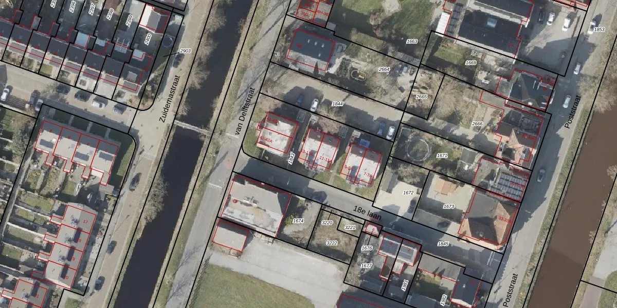 Het perceel waarop 18e laan 13 staat heeft een oppervlakte van 947 m². Dit is een groot perceel. De perceeloppervlakte wordt geregistreerd door het Kadaster. Gedetailleerde informatie over de maten van dit perceel kunt u vinden in het rapport Kadastrale kaart met maatvoering van 18e laan 13.