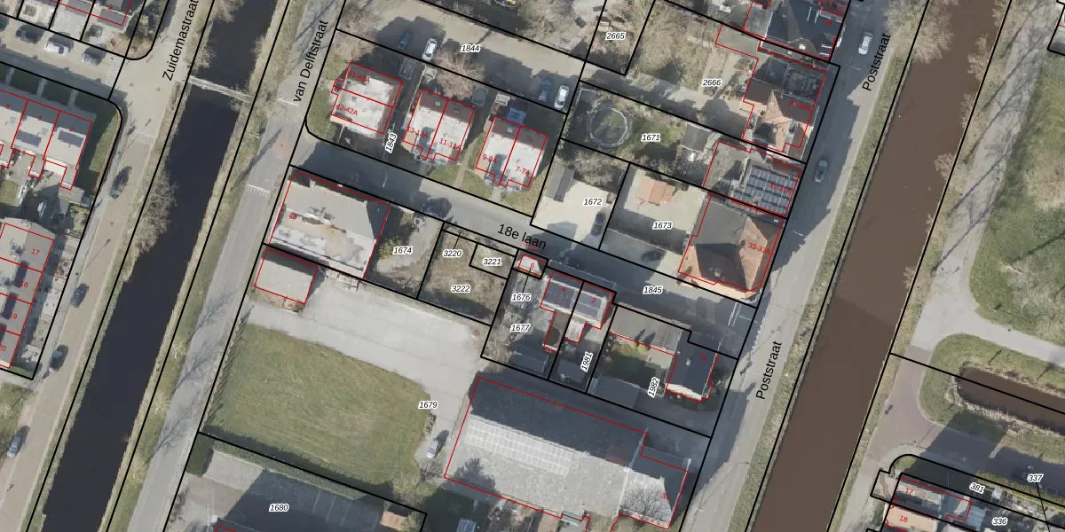 Gebruik de zoekbalk of klik op een perceel voor informatie over de adressen binnen dit perceel.