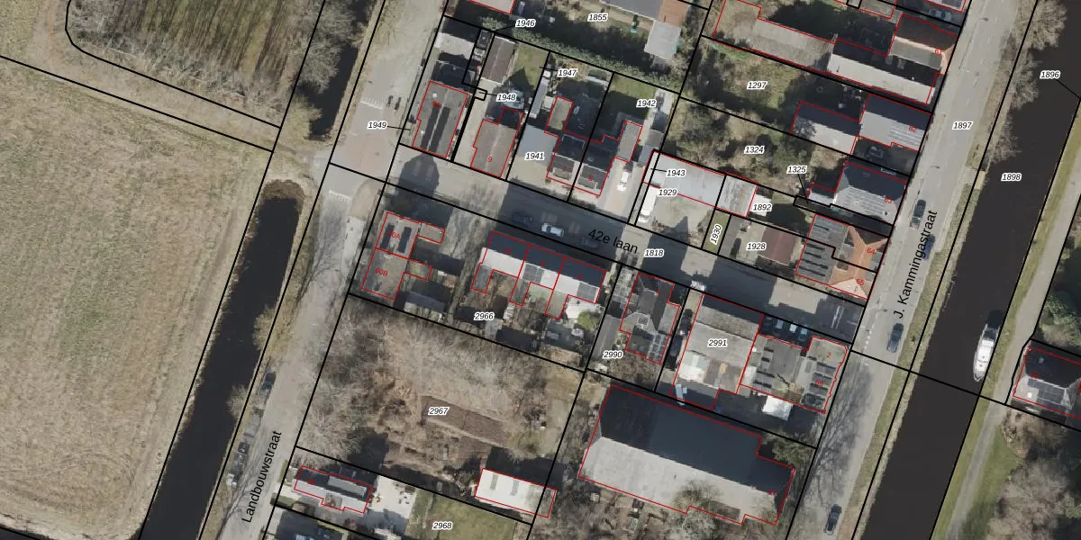 Het perceel waarop 42e laan 8 staat heeft een oppervlakte van 980 m². Dit is een groot perceel. De perceeloppervlakte wordt geregistreerd door het Kadaster. Gedetailleerde informatie over de maten van dit perceel kunt u vinden in het rapport Kadastrale kaart met maatvoering van 42e laan 8.