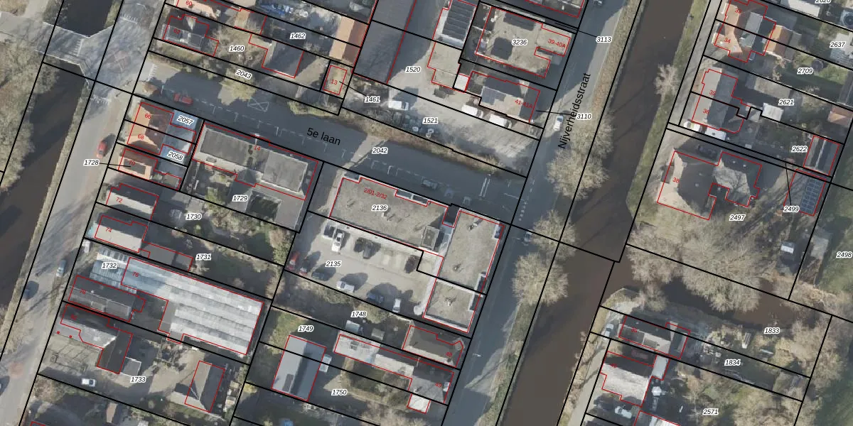 Het perceel waarop 5e laan 2-04 staat heeft een oppervlakte van 656 m². Dit is een groot perceel. De perceeloppervlakte wordt geregistreerd door het Kadaster. Gedetailleerde informatie over de maten van dit perceel kunt u vinden in het rapport Kadastrale kaart met maatvoering van 5e laan 2-04.
