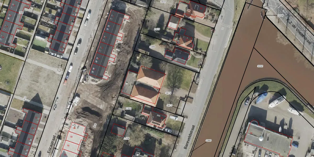 Bareveldstraat 33 is gelegen op kadastraal perceel WDV02F3474. Deze kadastrale aanduiding is uniek en wordt gebruikt door het Kadaster om eigendomsrechten en andere zakelijke rechten vast te leggen. Het perceel maakt onderdeel uit van de kadastrale gemeente Wildervank.