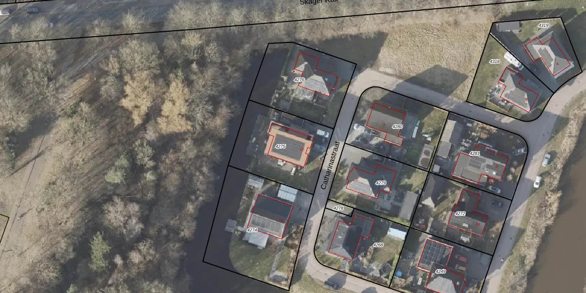 Catharinastraat 12 is gelegen op kadastraal perceel VDM00C4275. Deze kadastrale aanduiding is uniek en wordt gebruikt door het Kadaster om eigendomsrechten en andere zakelijke rechten vast te leggen. Het perceel maakt onderdeel uit van de kadastrale gemeente Veendam.