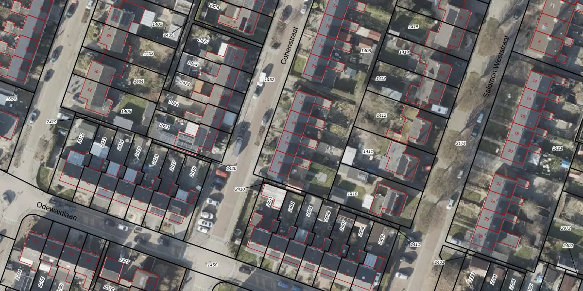 Het perceel waarop Cohenstraat 26 staat heeft een oppervlakte van 3245 m². Dit is een zeer groot perceel. De perceeloppervlakte wordt geregistreerd door het Kadaster. Gedetailleerde informatie over de maten van dit perceel kunt u vinden in het rapport Kadastrale kaart met maatvoering van Cohenstraat 26.