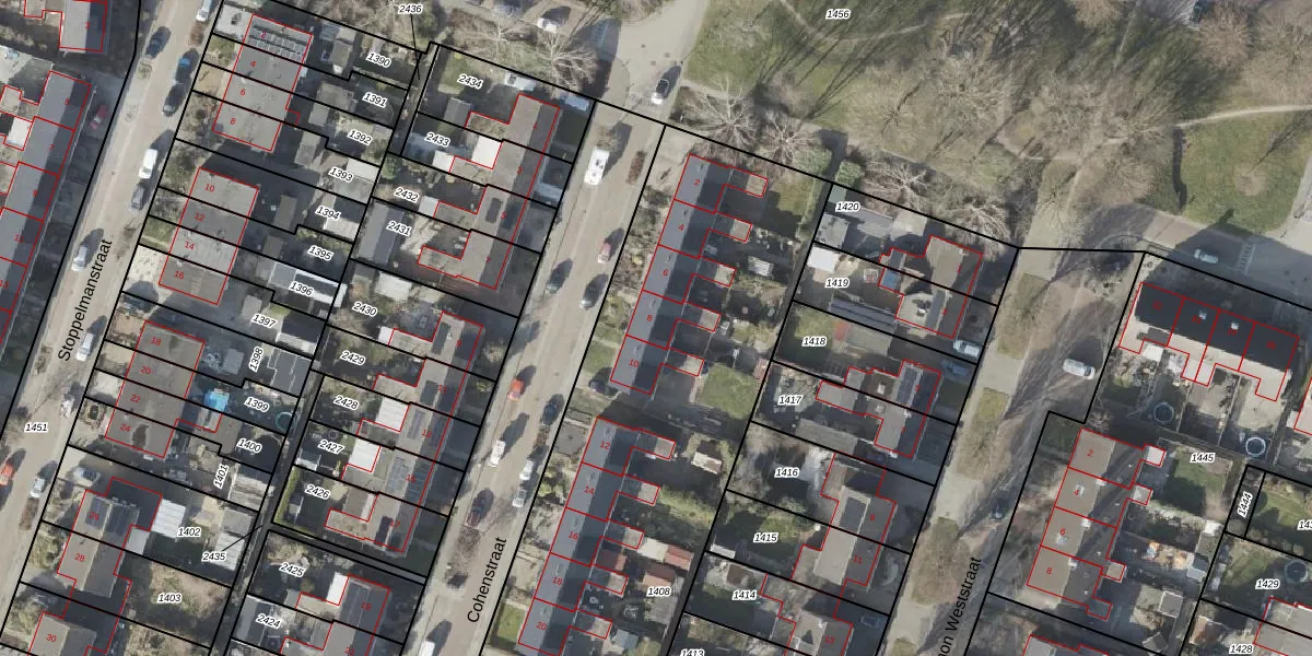 Het perceel waarop Cohenstraat 8 staat heeft een oppervlakte van 3245 m². Dit is een zeer groot perceel. De perceeloppervlakte wordt geregistreerd door het Kadaster. Gedetailleerde informatie over de maten van dit perceel kunt u vinden in het rapport Kadastrale kaart met maatvoering van Cohenstraat 8.