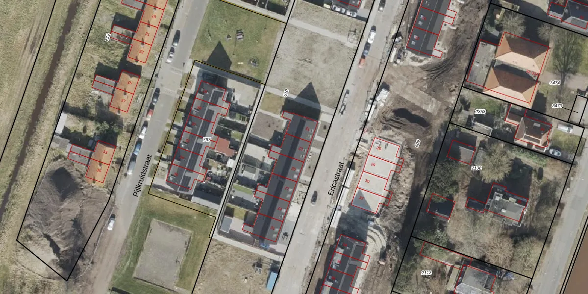 Ericastraat 23 is gelegen op kadastraal perceel WDV02G610. Deze kadastrale aanduiding is uniek en wordt gebruikt door het Kadaster om eigendomsrechten en andere zakelijke rechten vast te leggen. Het perceel maakt onderdeel uit van de kadastrale gemeente Wildervank.