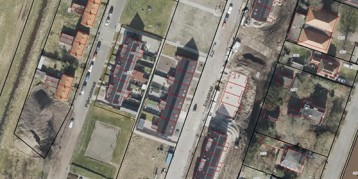 Het perceel waarop Ericastraat 25 staat heeft een oppervlakte van 4120 m². Dit is een zeer groot perceel. De perceeloppervlakte wordt geregistreerd door het Kadaster. Gedetailleerde informatie over de maten van dit perceel kunt u vinden in het rapport Kadastrale kaart met maatvoering van Ericastraat 25.