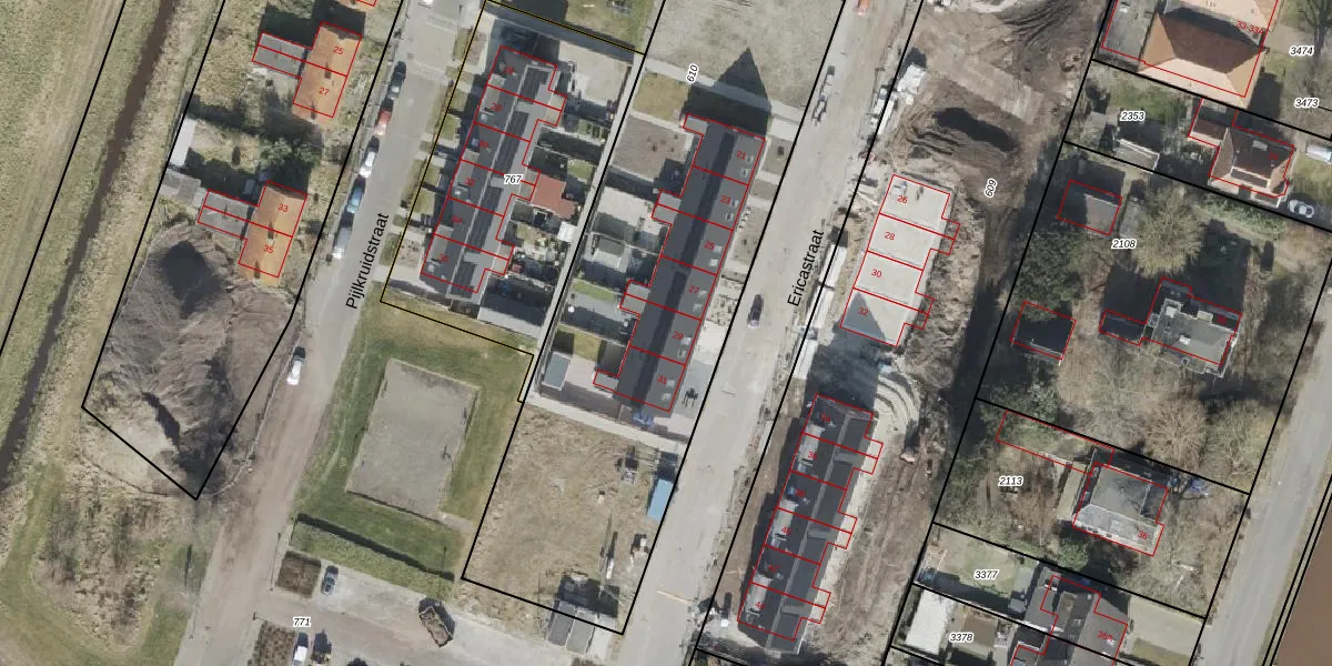 Het perceel waarop Ericastraat 29 staat heeft een oppervlakte van 4120 m². Dit is een zeer groot perceel. De perceeloppervlakte wordt geregistreerd door het Kadaster. Gedetailleerde informatie over de maten van dit perceel kunt u vinden in het rapport Kadastrale kaart met maatvoering van Ericastraat 29.