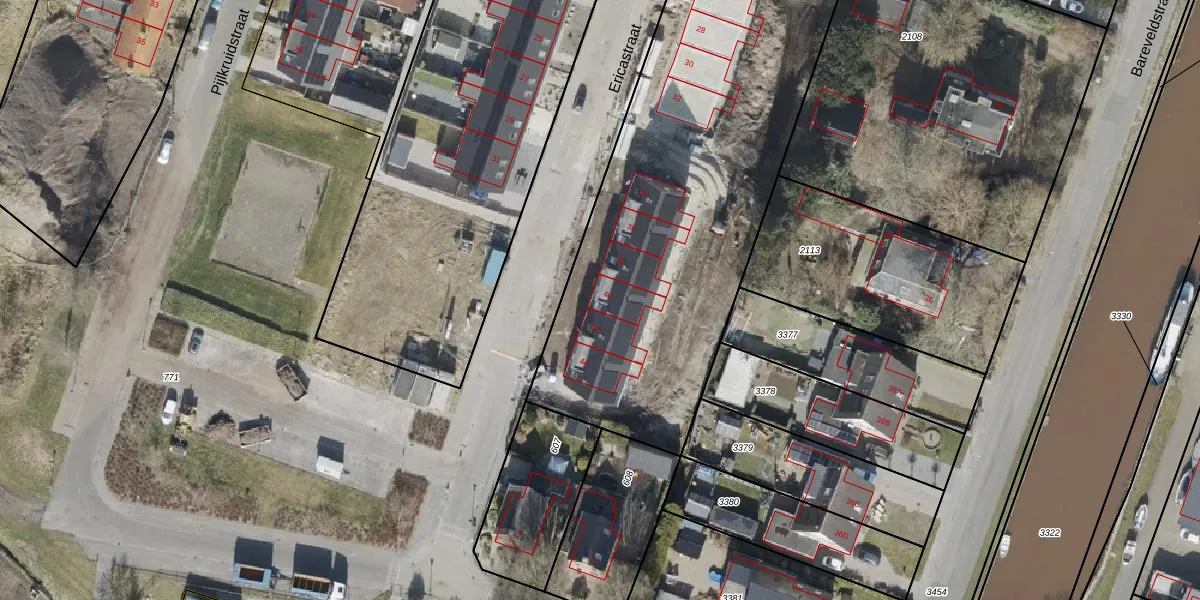 Het perceel waarop Ericastraat 40 staat heeft een oppervlakte van 4400 m². Dit is een zeer groot perceel. De perceeloppervlakte wordt geregistreerd door het Kadaster. Gedetailleerde informatie over de maten van dit perceel kunt u vinden in het rapport Kadastrale kaart met maatvoering van Ericastraat 40.