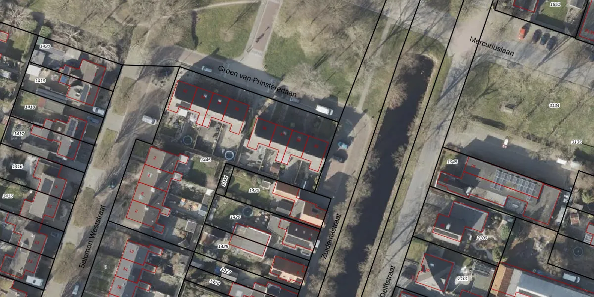 Het perceel waarop Groen van Prinstererlaan 38 staat heeft een oppervlakte van 2411 m². Dit is een zeer groot perceel. De perceeloppervlakte wordt geregistreerd door het Kadaster. Gedetailleerde informatie over de maten van dit perceel kunt u vinden in het rapport Kadastrale kaart met maatvoering van Groen van Prinstererlaan 38.