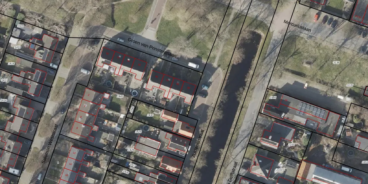 Het perceel waarop Groen van Prinstererlaan 39 staat heeft een oppervlakte van 2411 m². Dit is een zeer groot perceel. De perceeloppervlakte wordt geregistreerd door het Kadaster. Gedetailleerde informatie over de maten van dit perceel kunt u vinden in het rapport Kadastrale kaart met maatvoering van Groen van Prinstererlaan 39.
