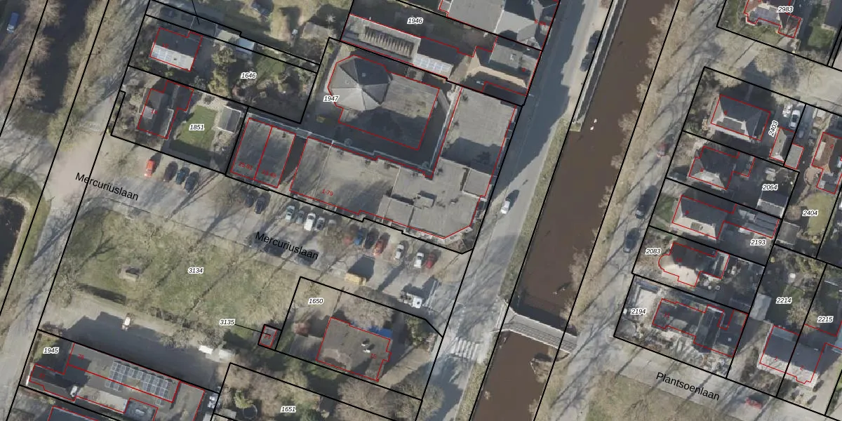 Het perceel waarop Mercuriuslaan 37 staat heeft een oppervlakte van 2078 m². Dit is een zeer groot perceel. De perceeloppervlakte wordt geregistreerd door het Kadaster. Gedetailleerde informatie over de maten van dit perceel kunt u vinden in het rapport Kadastrale kaart met maatvoering van Mercuriuslaan 37.