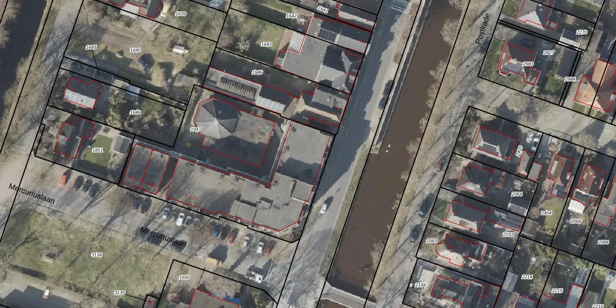 Het perceel waarop Mercuriuslaan 55 staat heeft een oppervlakte van 2078 m². Dit is een zeer groot perceel. De perceeloppervlakte wordt geregistreerd door het Kadaster. Gedetailleerde informatie over de maten van dit perceel kunt u vinden in het rapport Kadastrale kaart met maatvoering van Mercuriuslaan 55.
