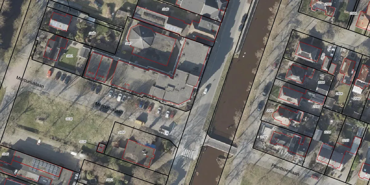 Het perceel waarop Mercuriuslaan 61 staat heeft een oppervlakte van 2078 m². Dit is een zeer groot perceel. De perceeloppervlakte wordt geregistreerd door het Kadaster. Gedetailleerde informatie over de maten van dit perceel kunt u vinden in het rapport Kadastrale kaart met maatvoering van Mercuriuslaan 61.