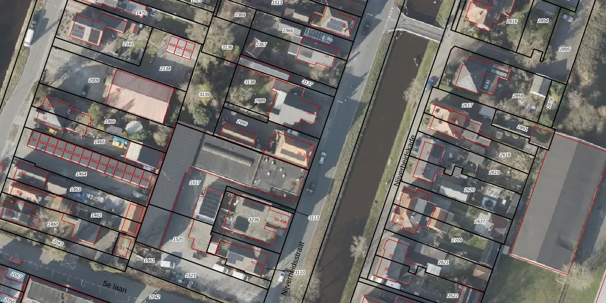 Het perceel waarop Nijverheidsstraat 36 staat heeft een oppervlakte van 351 m². Dit is een groot perceel. De perceeloppervlakte wordt geregistreerd door het Kadaster. Gedetailleerde informatie over de maten van dit perceel kunt u vinden in het rapport Kadastrale kaart met maatvoering van Nijverheidsstraat 36.