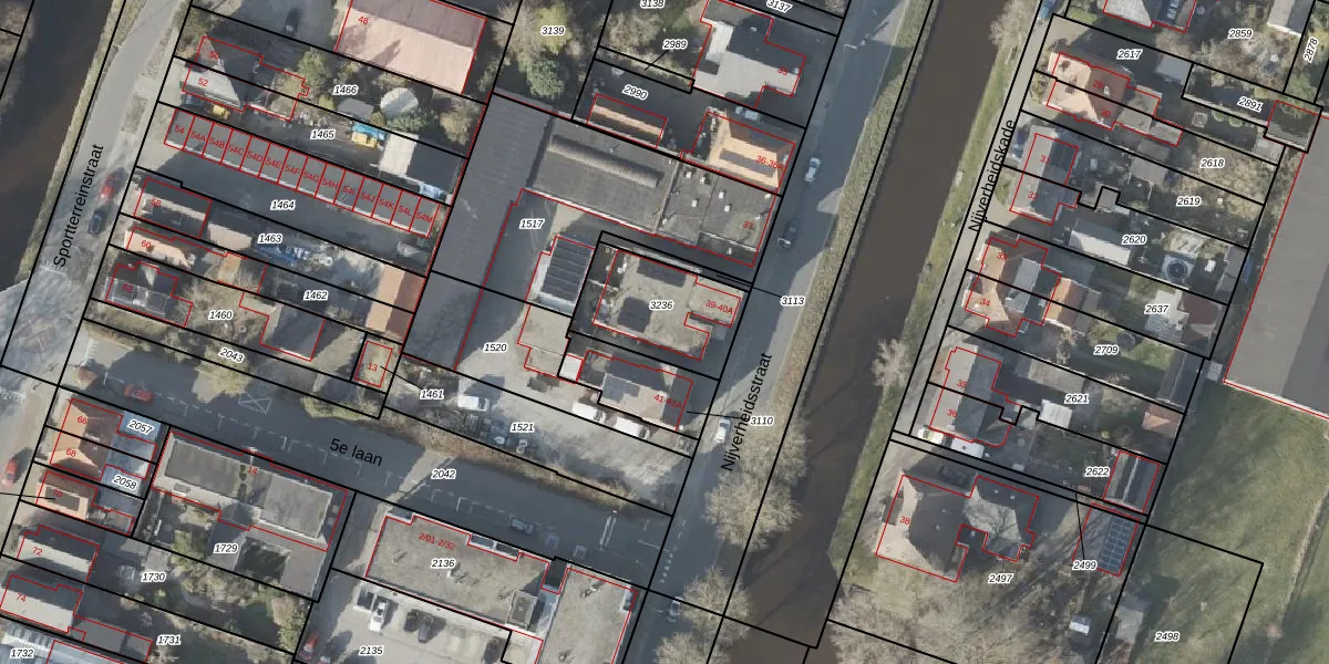 Het perceel waarop Nijverheidsstraat 40 staat heeft een oppervlakte van 338 m². Dit is een groot perceel. De perceeloppervlakte wordt geregistreerd door het Kadaster. Gedetailleerde informatie over de maten van dit perceel kunt u vinden in het rapport Kadastrale kaart met maatvoering van Nijverheidsstraat 40.