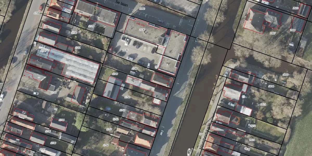 Het perceel waarop Nijverheidsstraat 48 staat heeft een oppervlakte van 380 m². Dit is een groot perceel. De perceeloppervlakte wordt geregistreerd door het Kadaster. Gedetailleerde informatie over de maten van dit perceel kunt u vinden in het rapport Kadastrale kaart met maatvoering van Nijverheidsstraat 48.