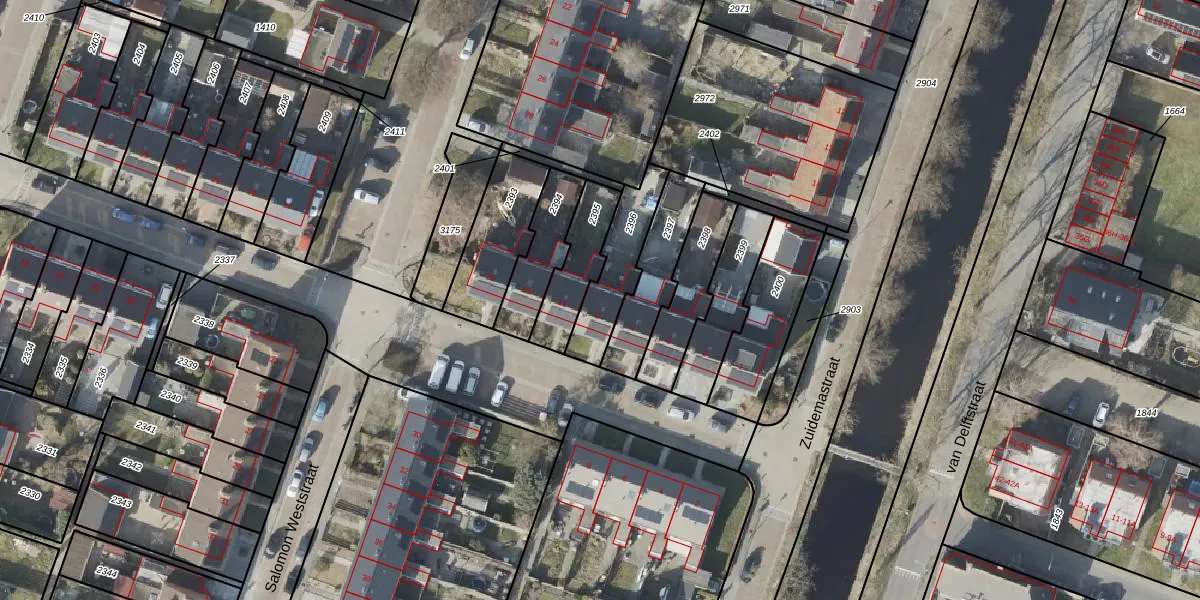 Gebruik de zoekbalk of klik op een perceel voor informatie over de adressen binnen dit perceel.