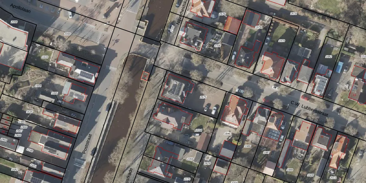 Het perceel waarop Postkade 1 staat heeft een oppervlakte van 575 m². Dit is een groot perceel. De perceeloppervlakte wordt geregistreerd door het Kadaster. Gedetailleerde informatie over de maten van dit perceel kunt u vinden in het rapport Kadastrale kaart met maatvoering van Postkade 1.
