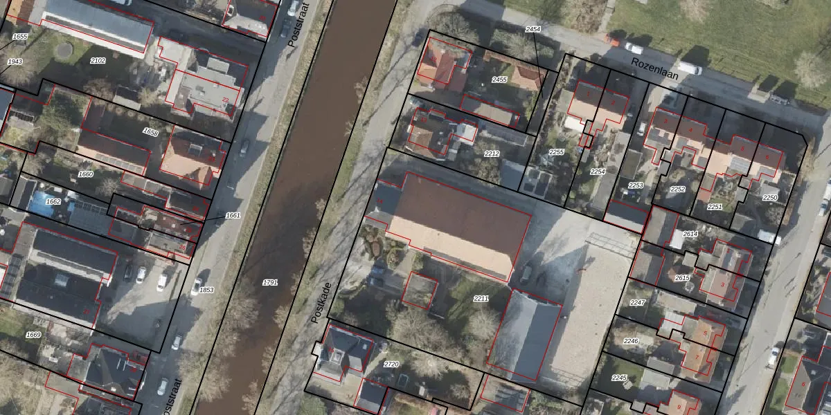 Het perceel waarop Postkade 14 staat heeft een oppervlakte van 2850 m². Dit is een zeer groot perceel. De perceeloppervlakte wordt geregistreerd door het Kadaster. Gedetailleerde informatie over de maten van dit perceel kunt u vinden in het rapport Kadastrale kaart met maatvoering van Postkade 14.