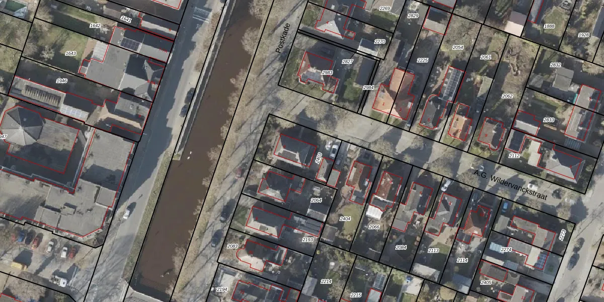Het perceel waarop Postkade 6 staat heeft een oppervlakte van 415 m². Dit is een groot perceel. De perceeloppervlakte wordt geregistreerd door het Kadaster. Gedetailleerde informatie over de maten van dit perceel kunt u vinden in het rapport Kadastrale kaart met maatvoering van Postkade 6.