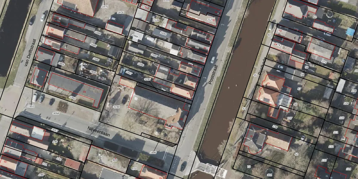 Poststraat 47 is gelegen op kadastraal perceel WDV02K1697. Deze kadastrale aanduiding is uniek en wordt gebruikt door het Kadaster om eigendomsrechten en andere zakelijke rechten vast te leggen. Het perceel maakt onderdeel uit van de kadastrale gemeente Wildervank.