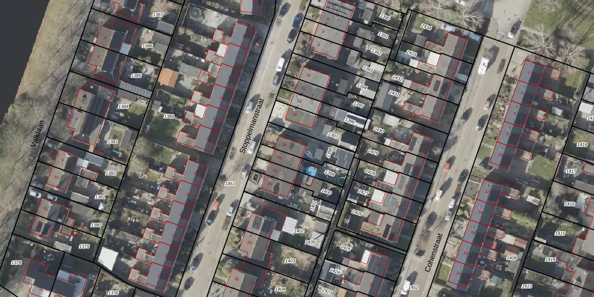 Gebruik de zoekbalk of klik op een perceel voor informatie over de adressen binnen dit perceel.
