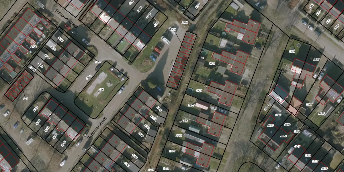 Het perceel waarop Schumerstraat 19-a staat heeft een oppervlakte van 217 m². Dit is een middelgroot perceel. De perceeloppervlakte wordt geregistreerd door het Kadaster. Gedetailleerde informatie over de maten van dit perceel kunt u vinden in het rapport Kadastrale kaart met maatvoering van Schumerstraat 19-a.