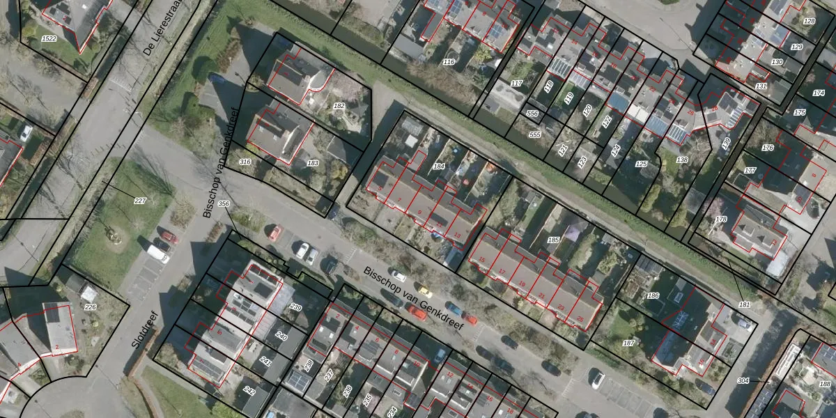 Bisschop van Genkdreef 9 is gelegen op kadastraal perceel WLS00H184. Deze kadastrale aanduiding is uniek en wordt gebruikt door het Kadaster om eigendomsrechten en andere zakelijke rechten vast te leggen. Het perceel maakt onderdeel uit van de kadastrale gemeente Willemstad.