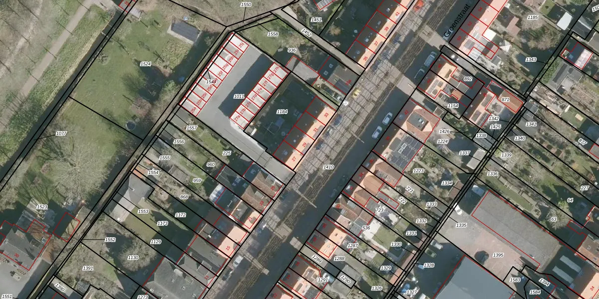 Het perceel waarop Groenstraat 29 staat heeft een oppervlakte van 535 m². Dit is een groot perceel. De perceeloppervlakte wordt geregistreerd door het Kadaster. Gedetailleerde informatie over de maten van dit perceel kunt u vinden in het rapport Kadastrale kaart met maatvoering van Groenstraat 29.