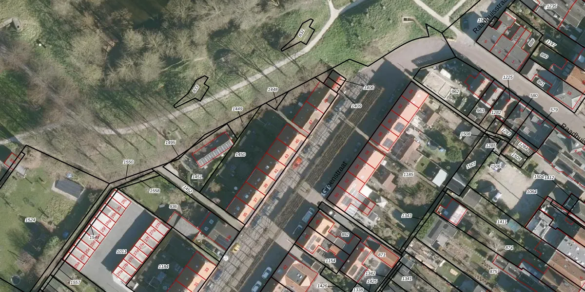 Het perceel waarop Groenstraat 45 staat heeft een oppervlakte van 900 m². Dit is een groot perceel. De perceeloppervlakte wordt geregistreerd door het Kadaster. Gedetailleerde informatie over de maten van dit perceel kunt u vinden in het rapport Kadastrale kaart met maatvoering van Groenstraat 45.