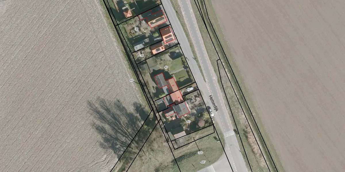 Helsedijk 5 is gelegen op kadastraal perceel WLS00K40. Deze kadastrale aanduiding is uniek en wordt gebruikt door het Kadaster om eigendomsrechten en andere zakelijke rechten vast te leggen. Het perceel maakt onderdeel uit van de kadastrale gemeente Willemstad.