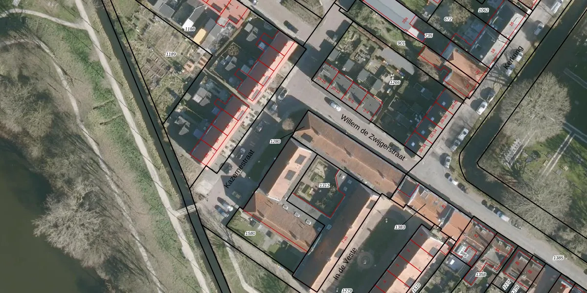 In de Veste 19 is gelegen op kadastraal perceel WLS00E1580. Deze kadastrale aanduiding is uniek en wordt gebruikt door het Kadaster om eigendomsrechten en andere zakelijke rechten vast te leggen. Het perceel maakt onderdeel uit van de kadastrale gemeente Willemstad.