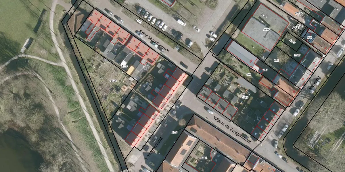 Het adres is gelegen op perceel 1188 in de sectie E en de kadastrale gemeente Willemstad. De kadastrale aanduiding is aldus WLS00-E-1188. Het perceel is kleiner dan gemiddeld in Willemstad. Het perceel is 2170 m² groot, terwijl het gemiddelde ligt op 1,1 ha. Het kleinste perceel in de kadastrale gemeente is 1 m² groot. De grootste perceeloppervlakte is 1,76 km². Op het perceel zijn 15 adressen aanwezig. De laatste wijziging in het de Basisregistratie Kadaster (BRK) was op 15-03-2007.