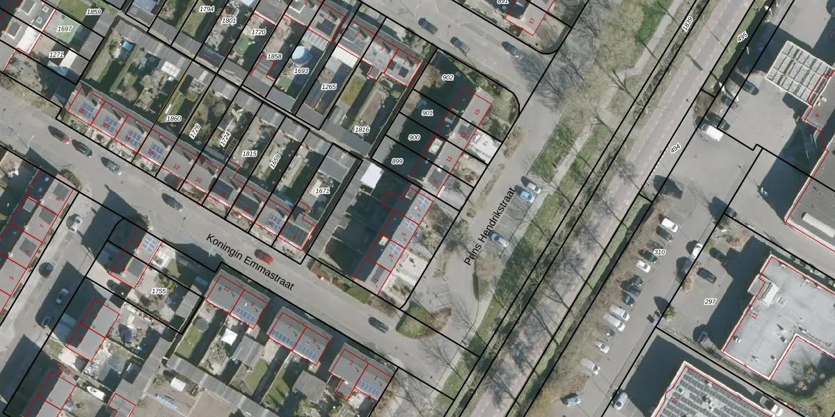 Het perceel waarop Prins Hendrikstraat 7 staat heeft een oppervlakte van 1389 m². Dit is een zeer groot perceel. De perceeloppervlakte wordt geregistreerd door het Kadaster. Gedetailleerde informatie over de maten van dit perceel kunt u vinden in het rapport Kadastrale kaart met maatvoering van Prins Hendrikstraat 7.