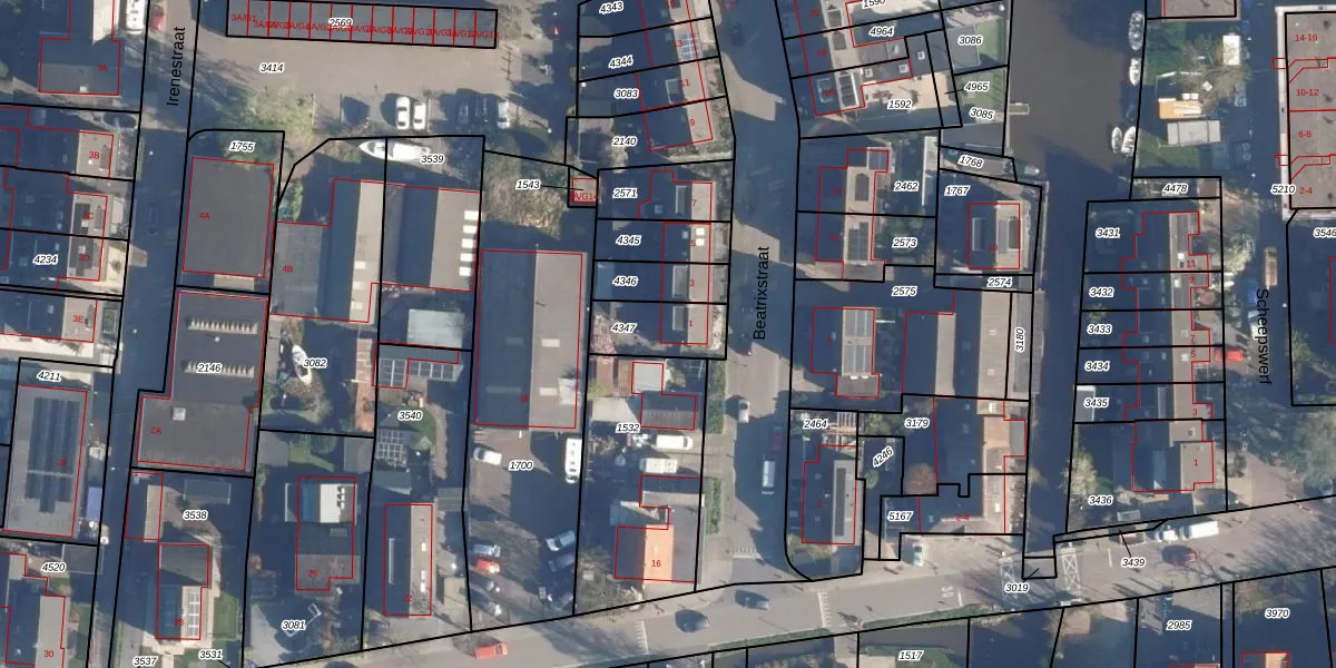 Gebruik de zoekbalk of klik op een perceel voor informatie over de adressen binnen dit perceel.